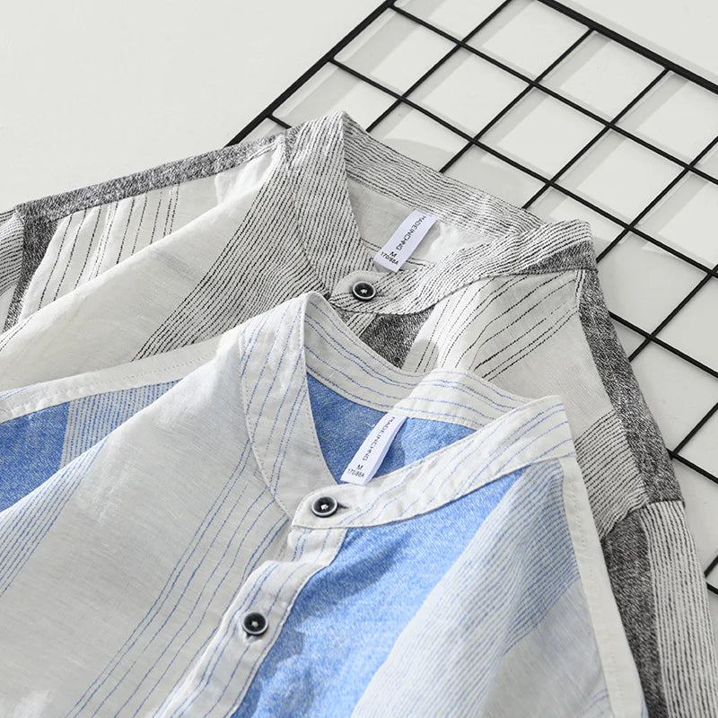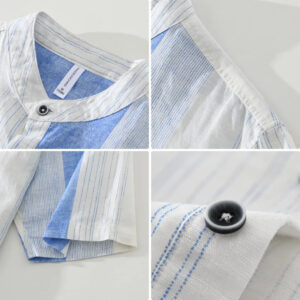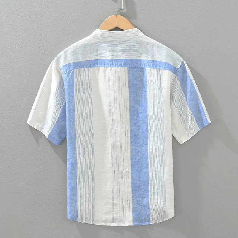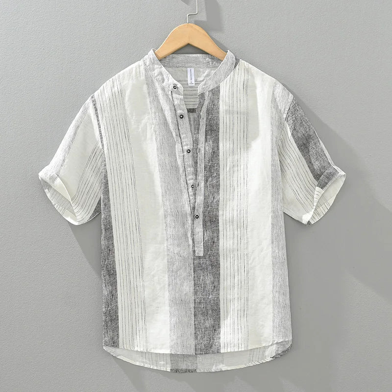 Men’s Striped Linen Short-Sleeve Pullover Shirt – Casual & Breathable