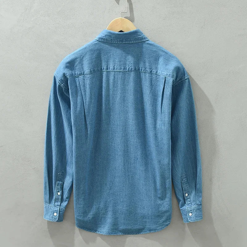 M Cotton Linen Men’s Denim Shirt – Stylish & Comfortable for Spring & Autumn