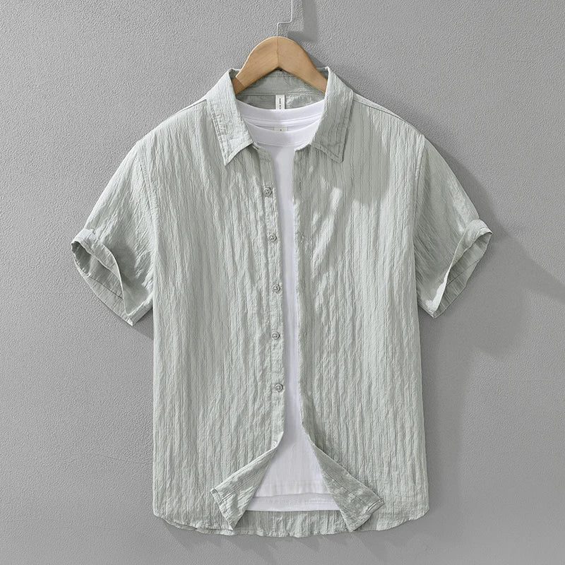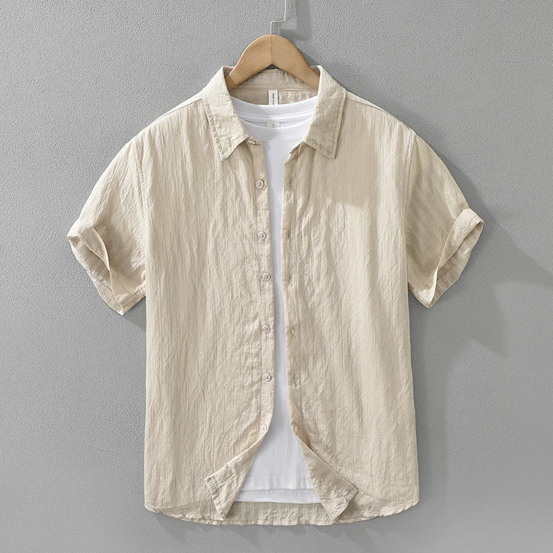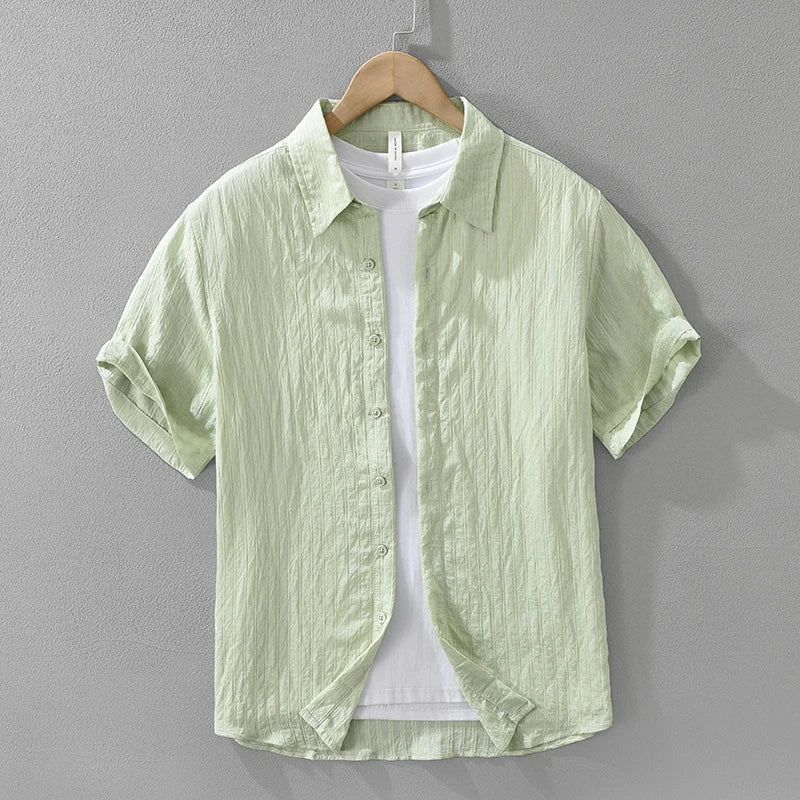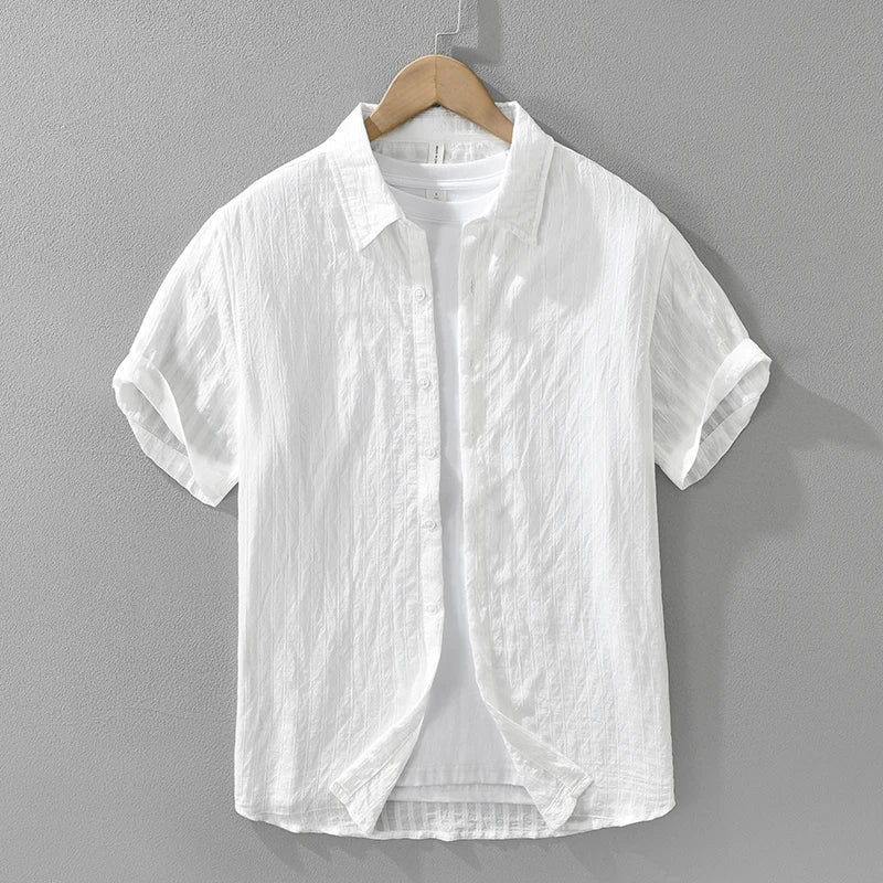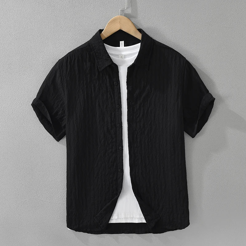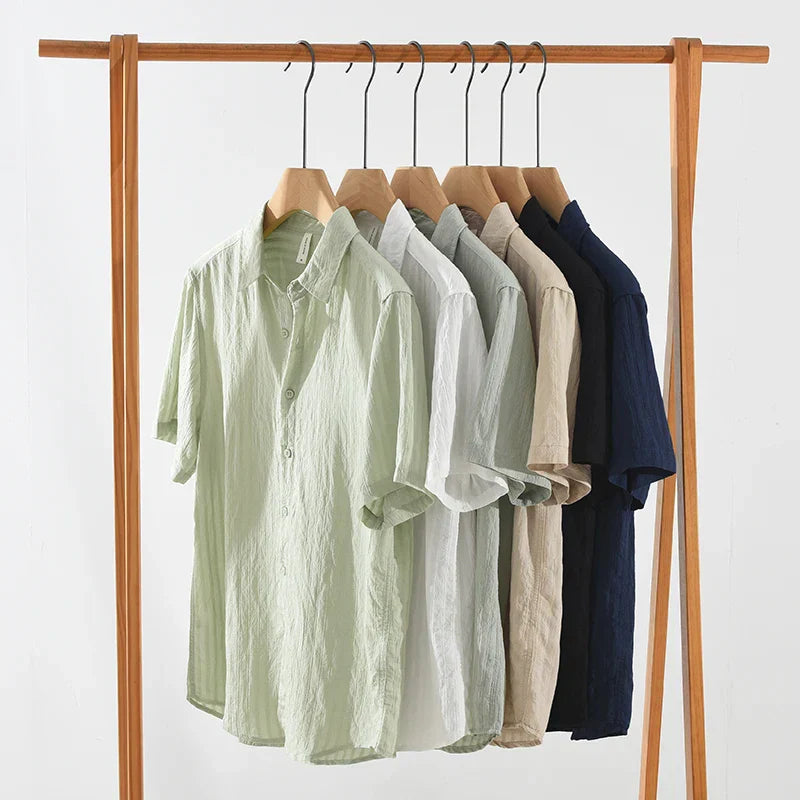 Men’s Casual Solid Cotton Shirt – Oversize Loose Short Sleeve Summer Shirt