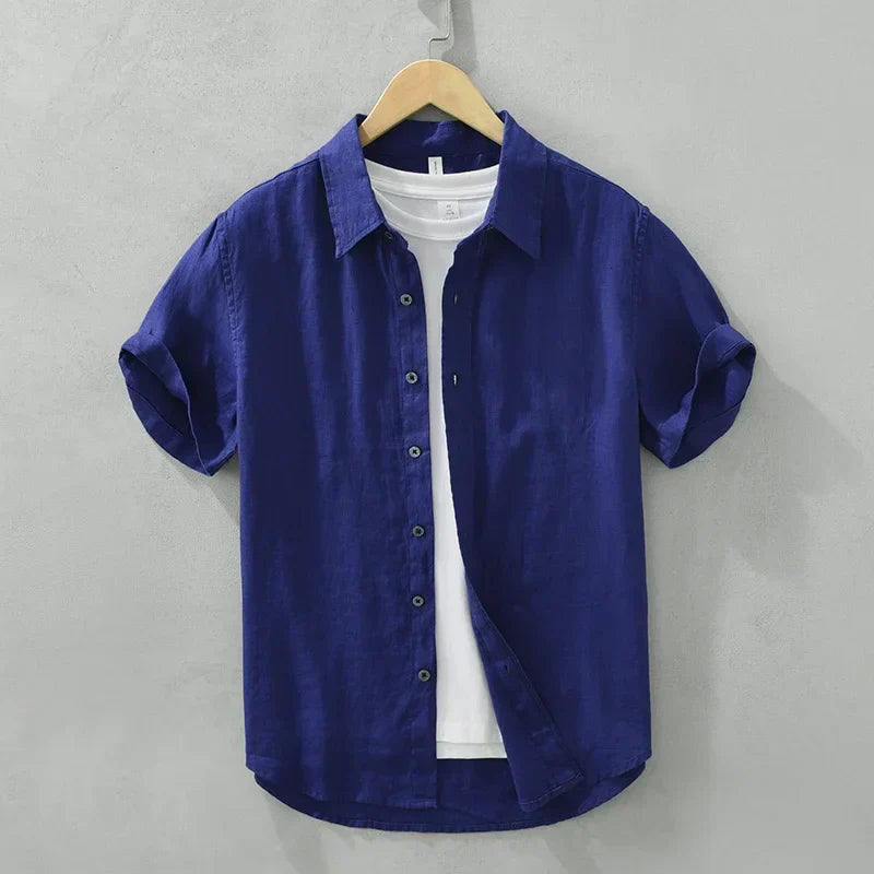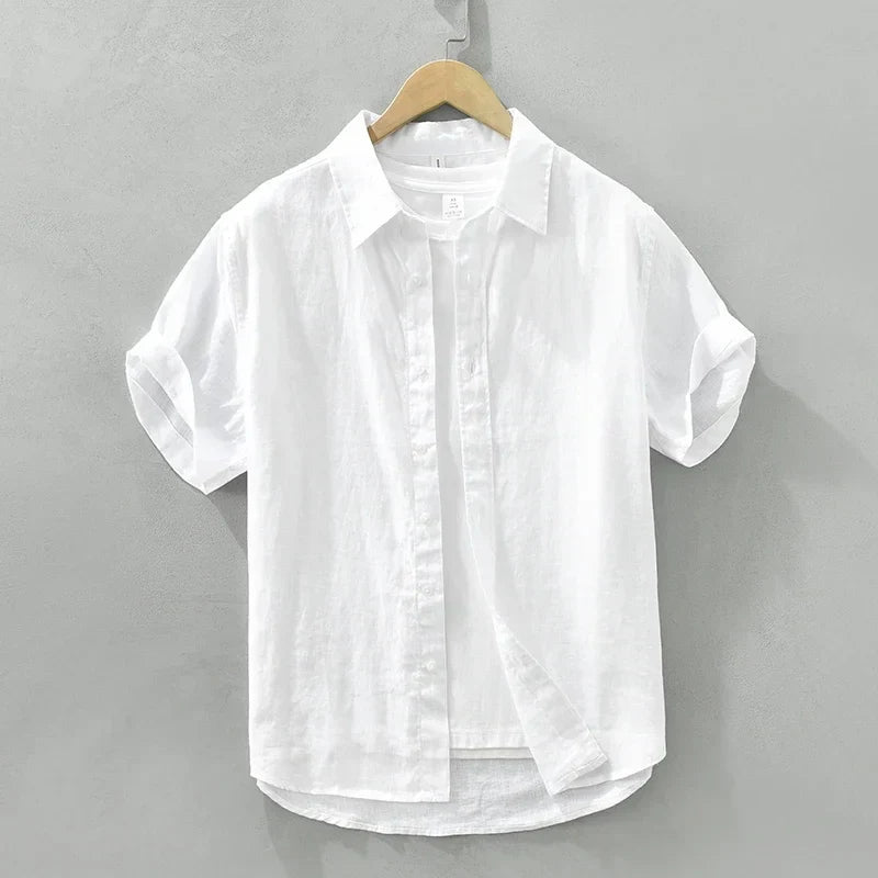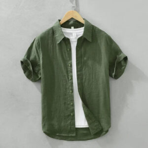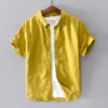 Men’s Fashion Linen Short Sleeve Shirt – Solid Casual Turn-down Collar