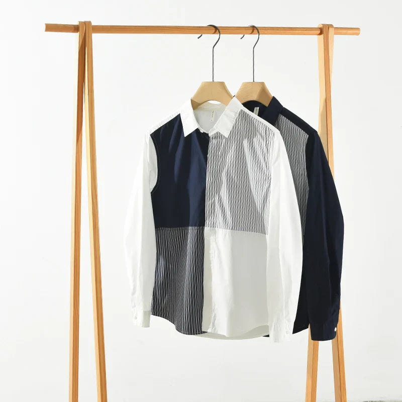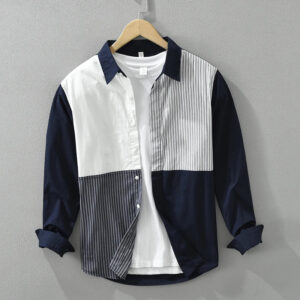Men’s Fashion Patchwork Long Sleeve Shirt – Loose Cotton Casual Shirt