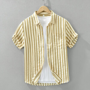 Men’s Fashion Striped Short Sleeve Shirt – Loose Casual Summer Shirt