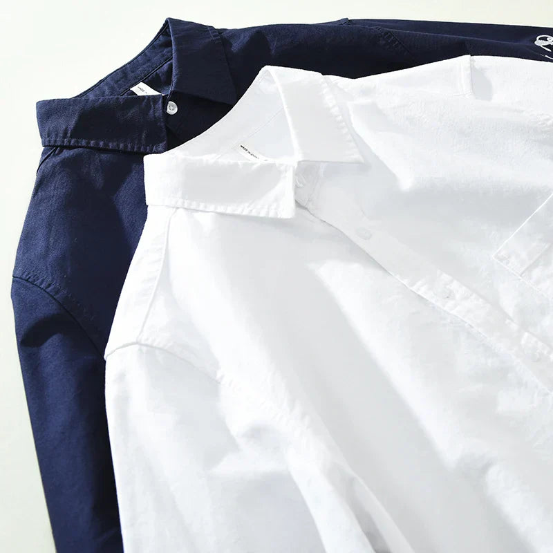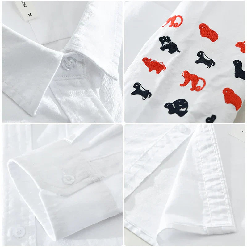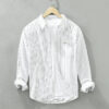 Men’s Fashion White Long Sleeve Shirt – Loose Embroidery Cotton Casual Shirt