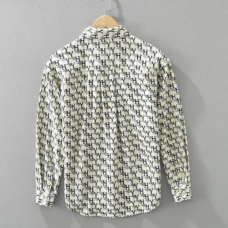 M Cotton Linen Men’s Printed Long Sleeve Shirt – Stylish & Comfortable for All Seasons