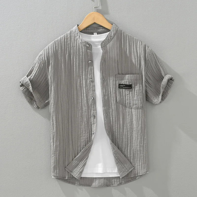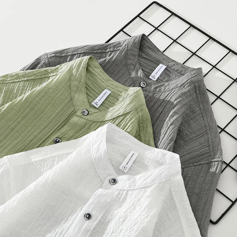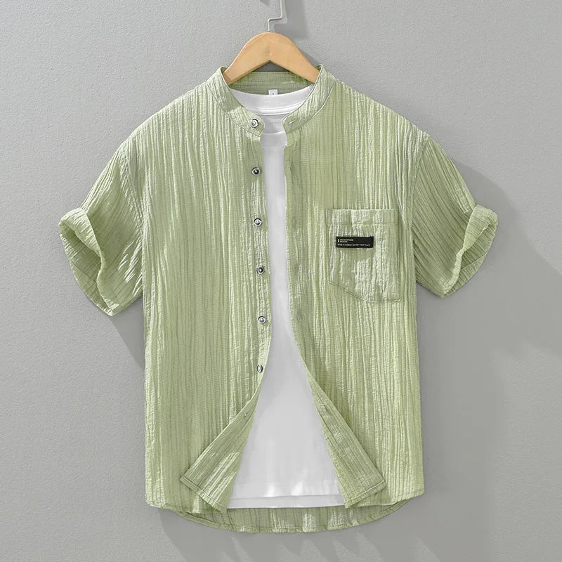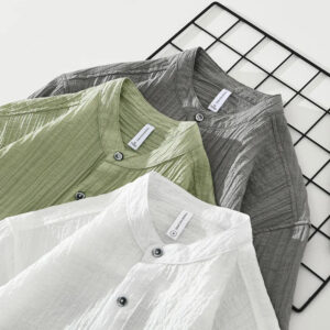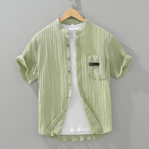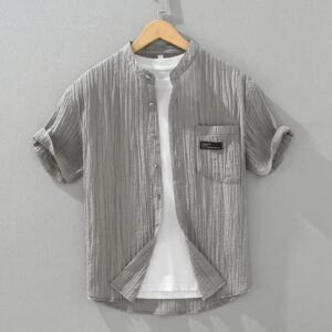 Upgrade your summer wardrobe with the M Cotton Linen Solid Short Sleeve Shirt, crafted from a premium blend of 80% Lyocell and 20% Nylon. This lightweight, breathable, and ultra-soft fabric ensures maximum comfort, making it an ideal choice for casual outings, weekend getaways, and everyday wear. Featuring a modern stand collar and available in gray, white, and green, this shirt offers a sleek and sophisticated look for effortless styling.