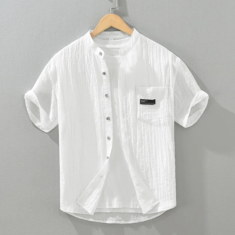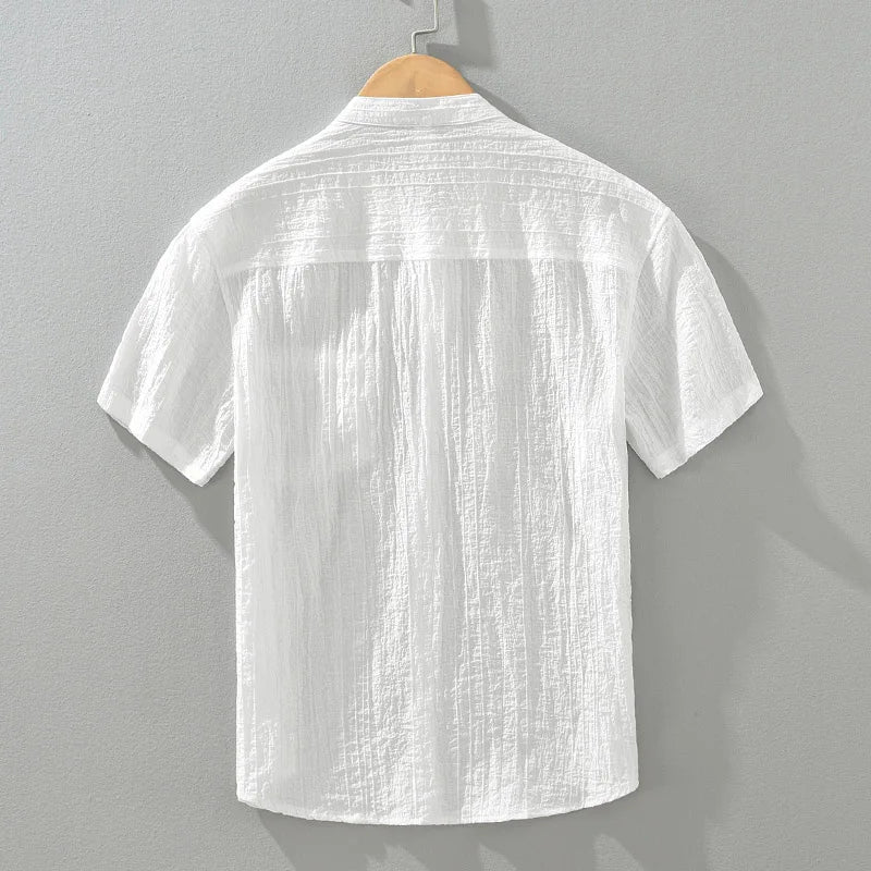 M Cotton Linen Men’s Solid Short Sleeve Shirt – Lightweight & Stylish for Summer
