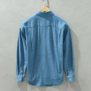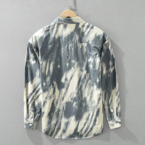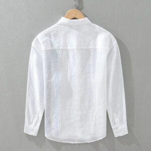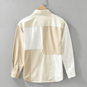 Men’s 100% Linen Long Sleeve Shirt – Loose Fit Striped Patchwork Shirt